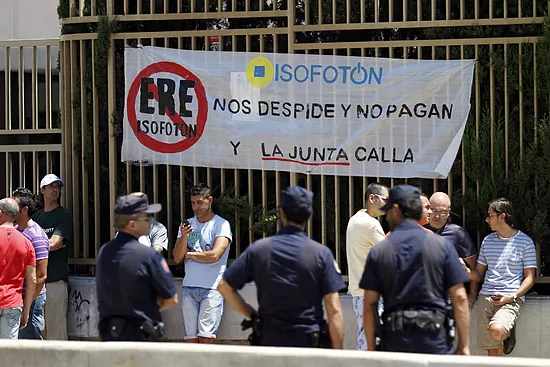 Protesta dels treballadors d'Isofotón al juliol de 2013.