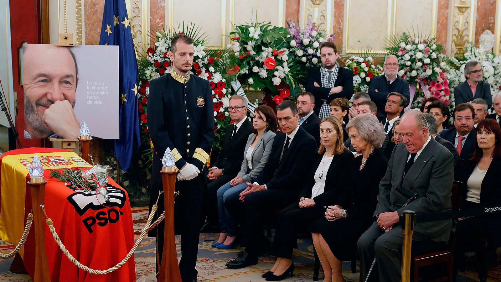 La mort d'Alfredo Pérez Rubalcaba i la seva capella ardent, va servir de lloc de trobada de les personalitats del PSOE, de les altres formacions polítiques, expresidents, els Reis en actiu i els emèrits, President i govern en ple, candidats, partits de la oposició, com si fos un cap d'estat, ha marcat l'inici informatiu en un cap de setmana gairebé sense actes electorals i amb el futbol concentrat a la tarda de diumenge. Alli estava tot el món polític, menys Aznar i els de Vox, que van aparèixer amb noms i cognoms en els mitjans polititzats de règim.